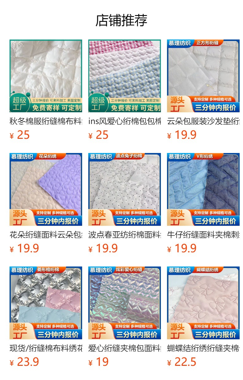 绗棉面料夹棉包包棉服宠物衣服家纺布料绣花布绗缝棉布料绗