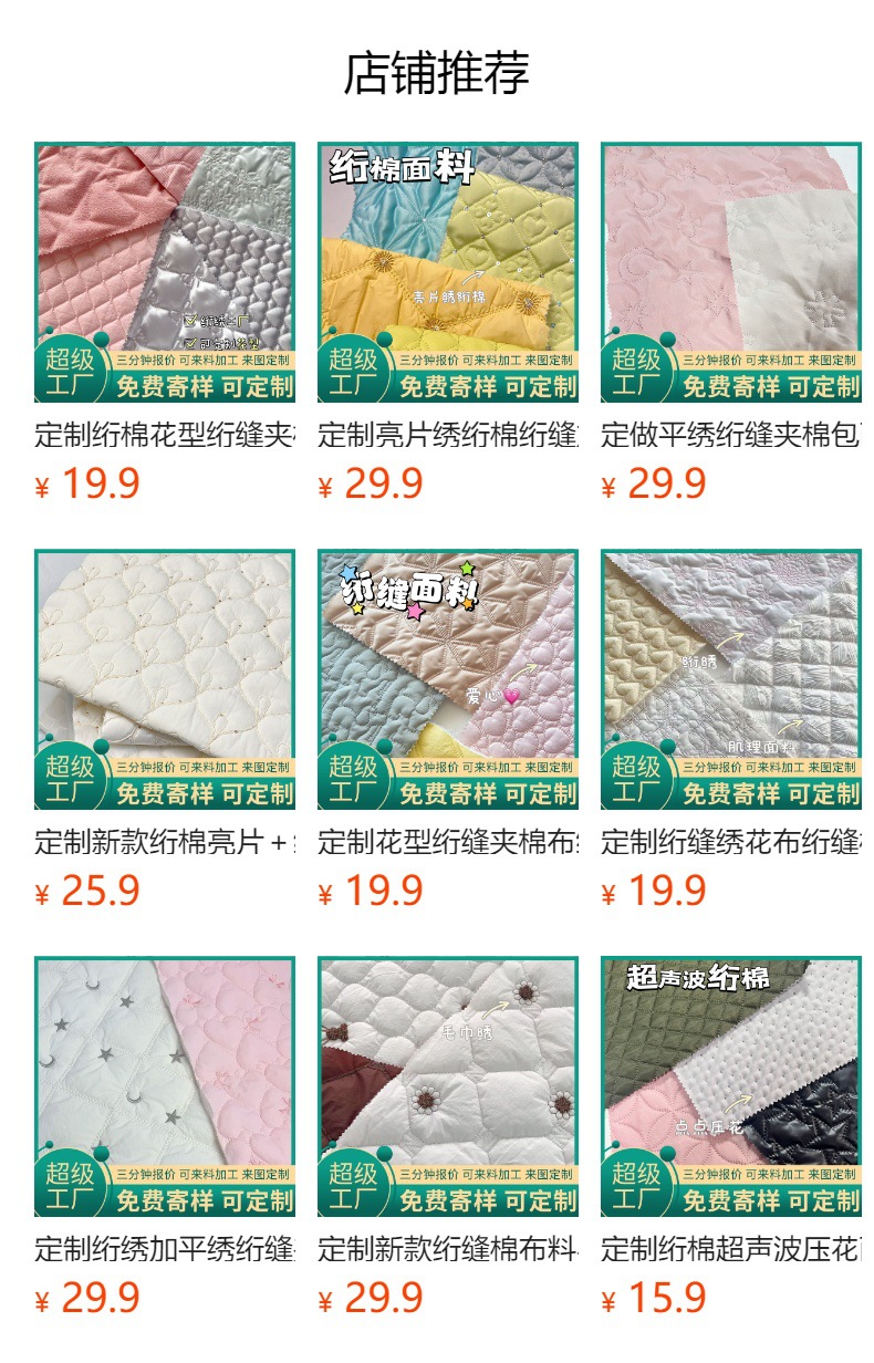 定制绗缝夹棉包面料绗绣衍缝刺绣加工绣花布包包家纺服装宠物用品