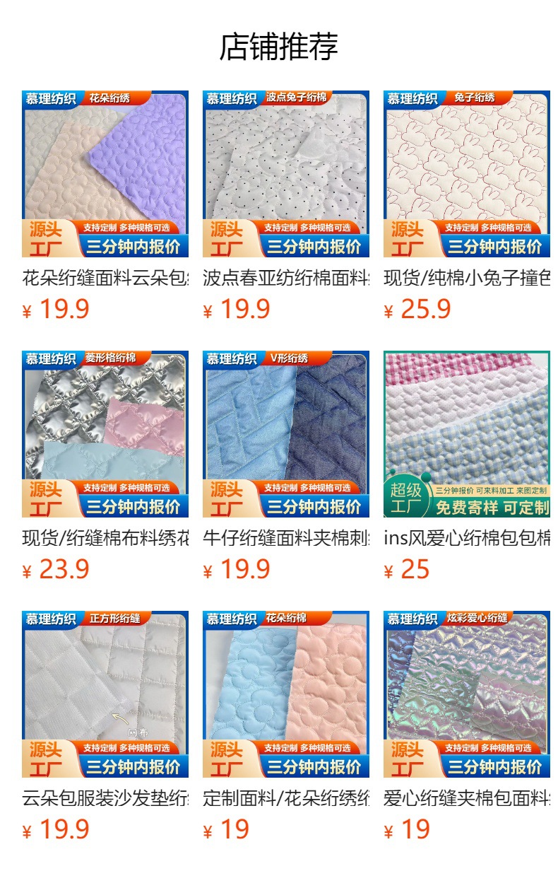 秋冬棉服绗缝棉布料绳绣钩绣花布绗缝夹棉包面料尼丝纺夹棉