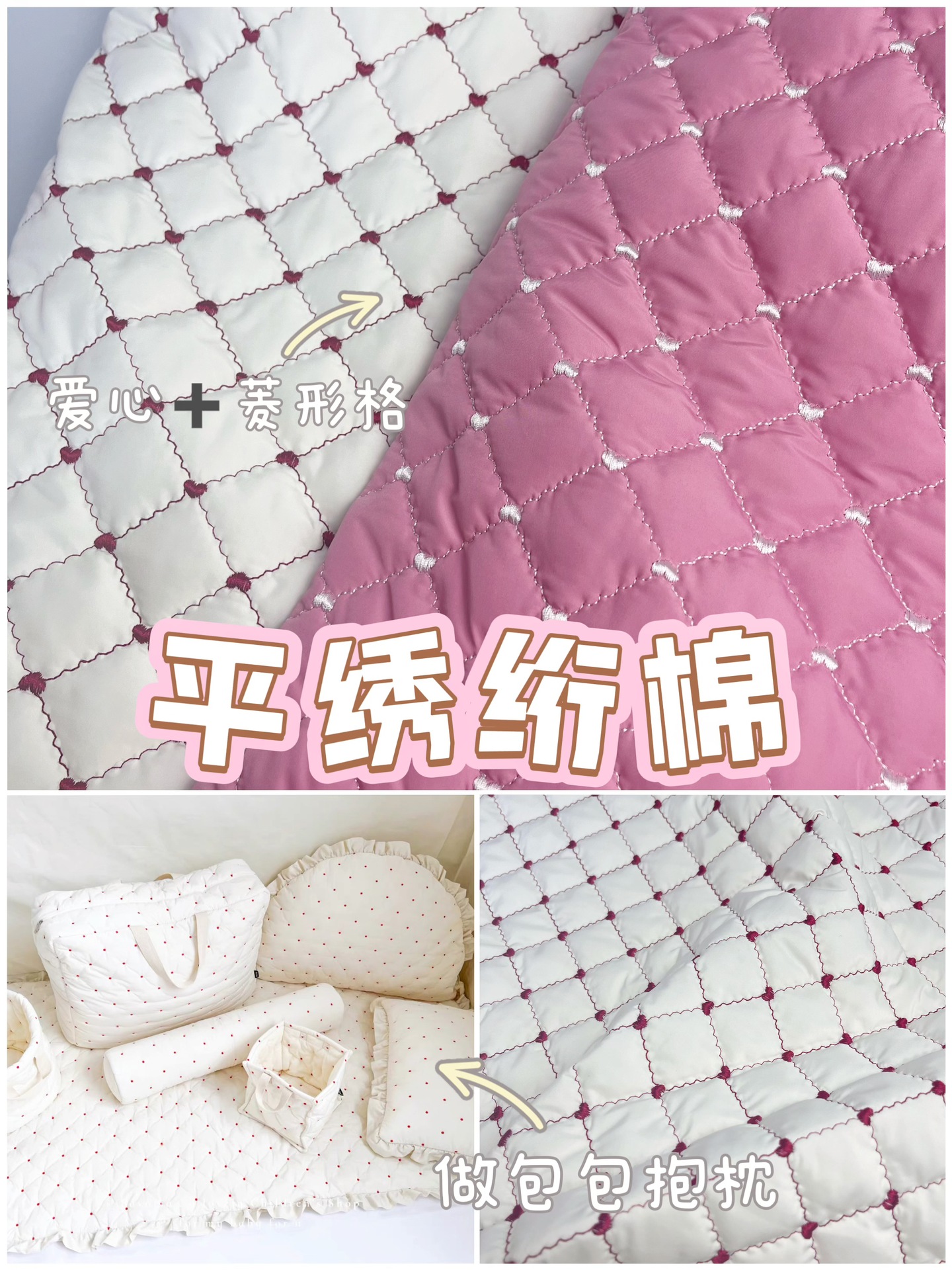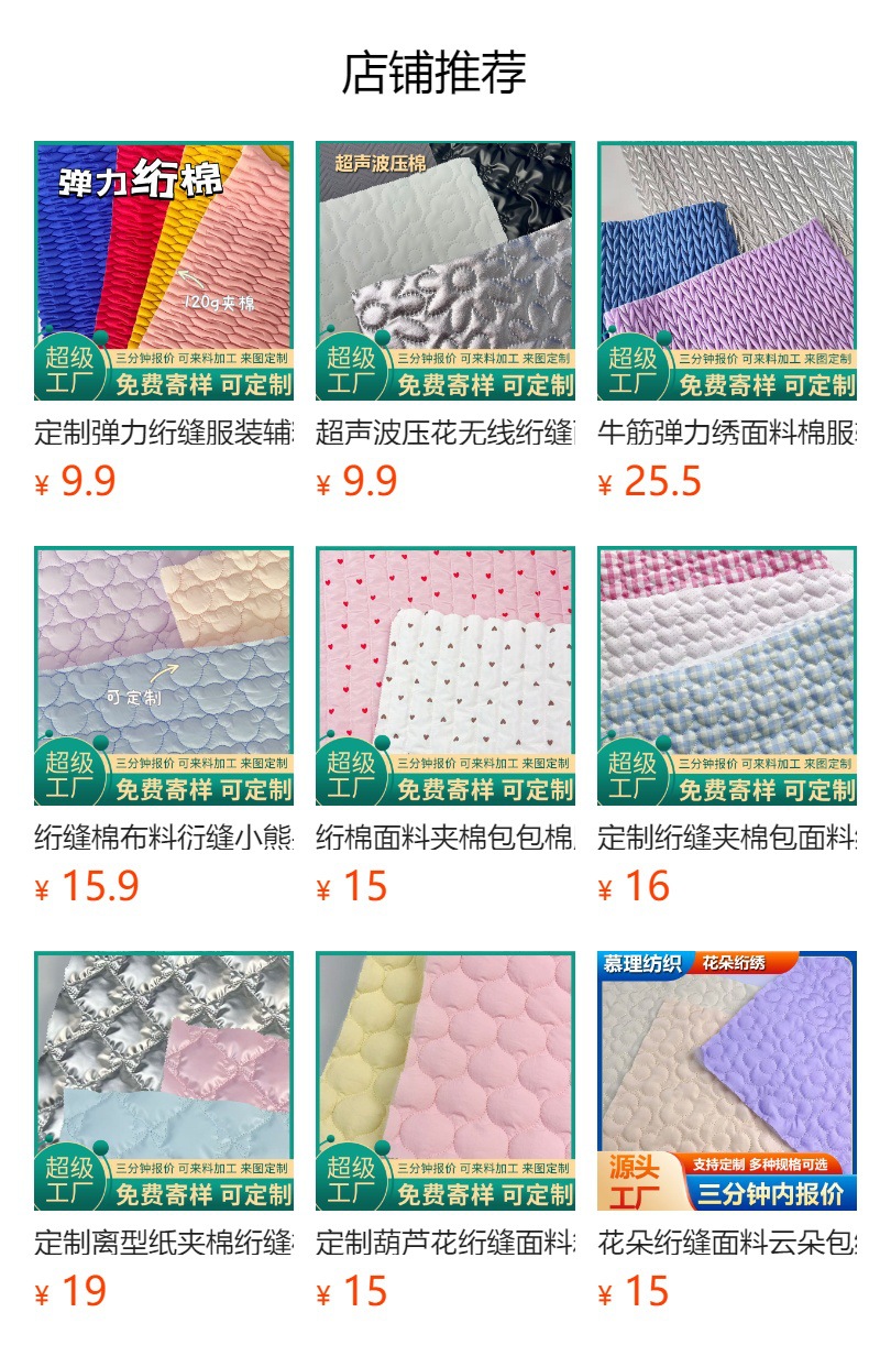 绗缝棉布料衍缝绗绣花面料云朵包绣花布料刺绣面料平绣服装