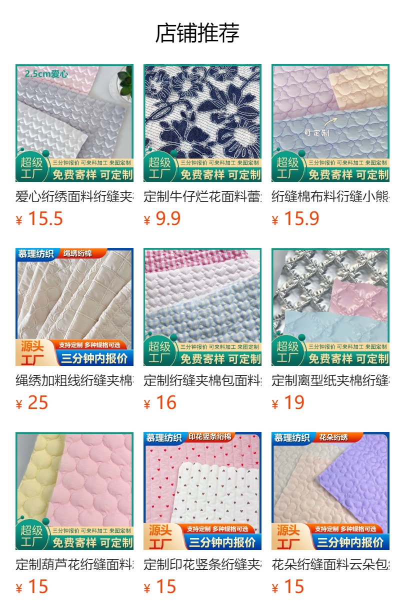 牛筋弹力绣面料棉服辅料立体绣花绗缝夹棉包秋冬绣花面料裥