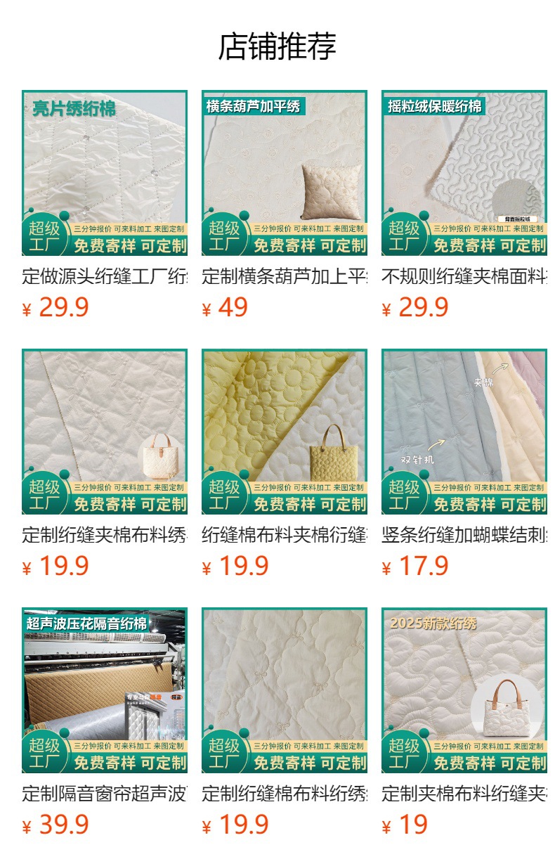 定做设计师款绗棉绗缝夹棉面料棉服箱包布3m新雪丽棉袄衍缝韩国