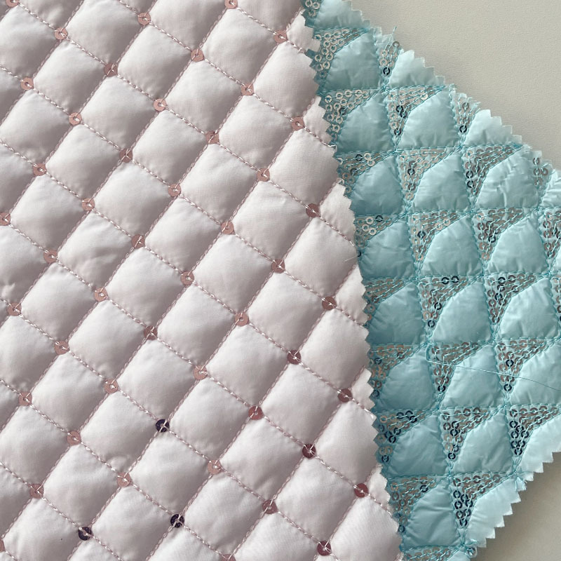 定制亮片绣绗棉衍缝绗缝夹棉包面料绣花布尼丝纺春亚纺服装包包布