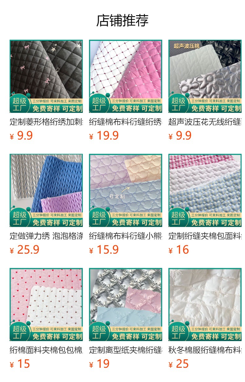 定制绳绣绗棉料绣花布绗缝夹棉包面料棉服裙子设计师面料立体绣花