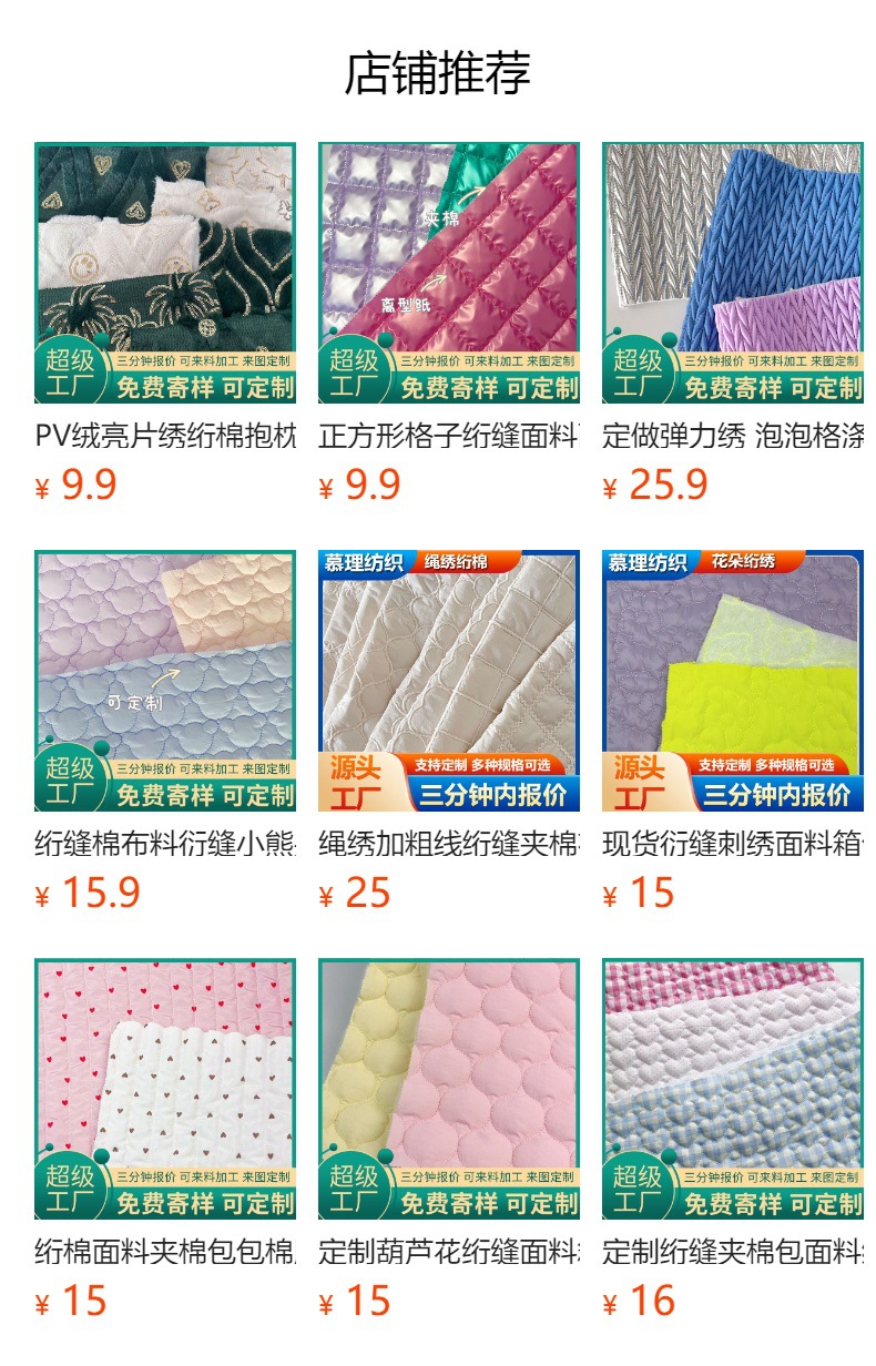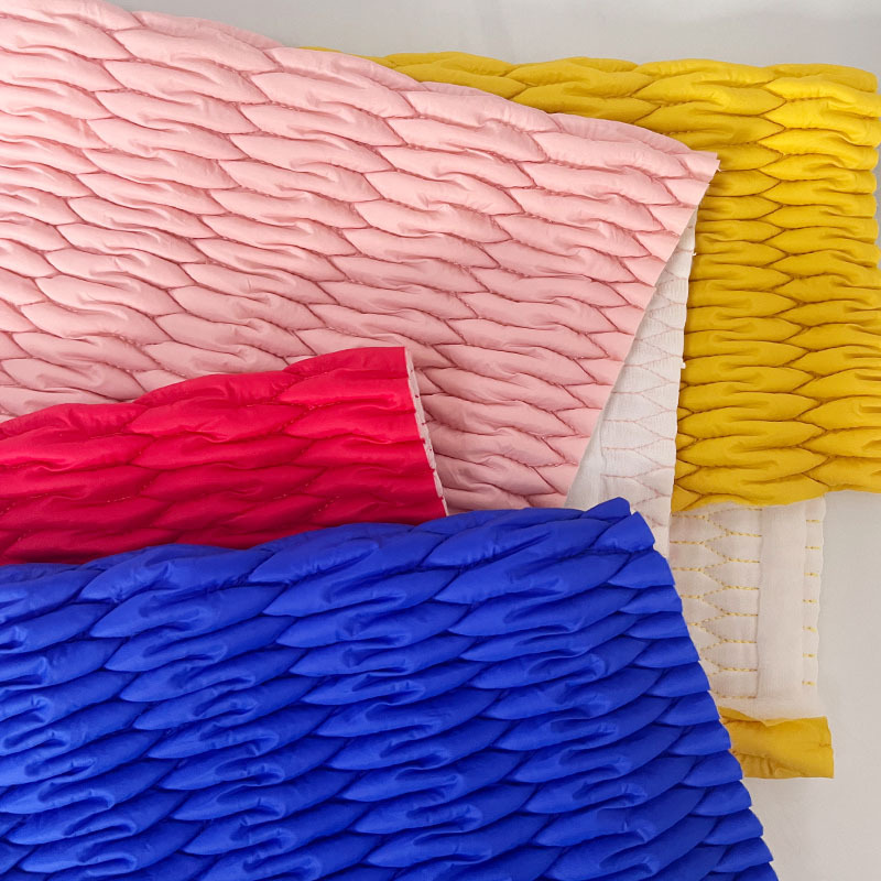 定制弹力绗缝服装辅料云朵包包家纺面料绗缝夹棉布绣花面料衍缝