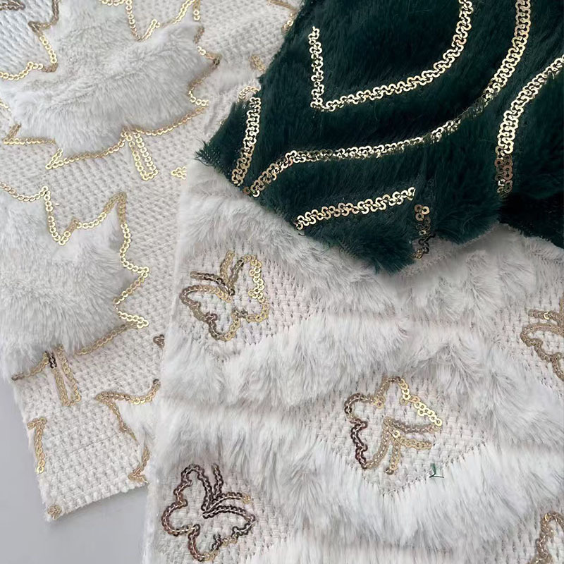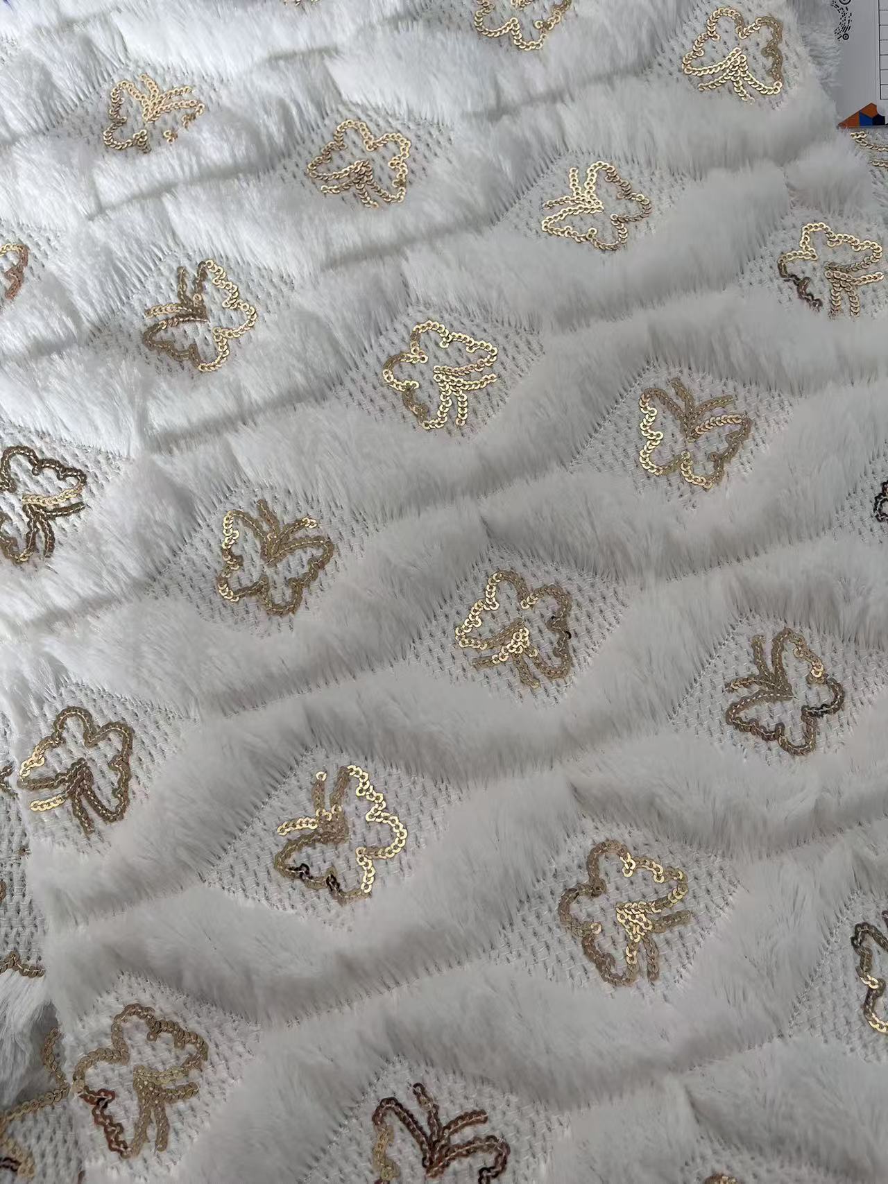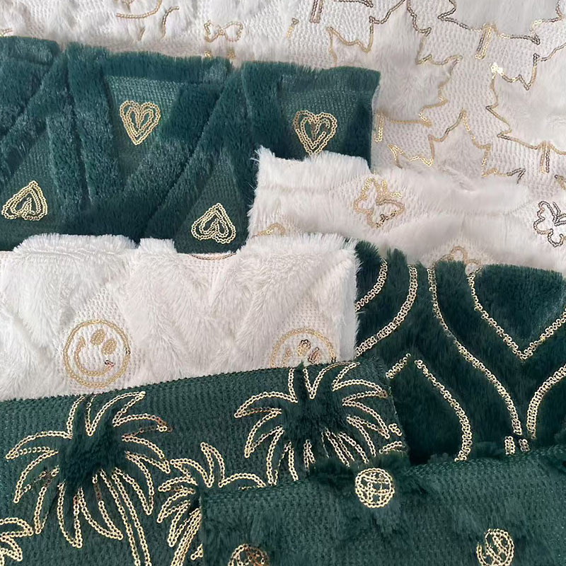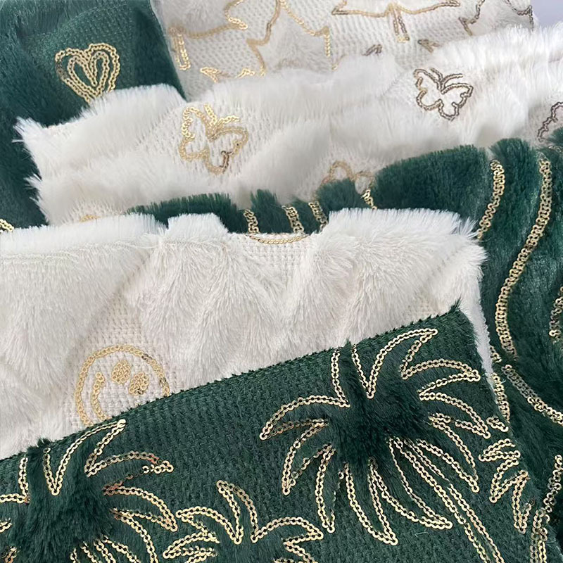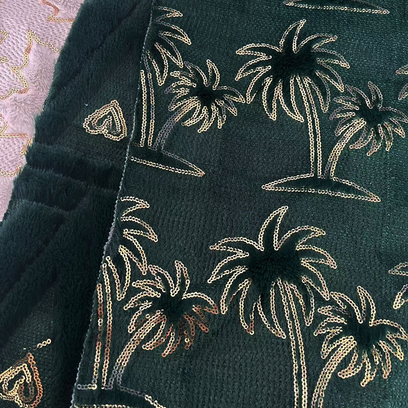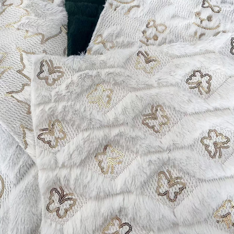 PV绒亮片绣绗棉抱枕舞台服面料家纺棉沙发垫绣花布绗缝绗绣衍缝