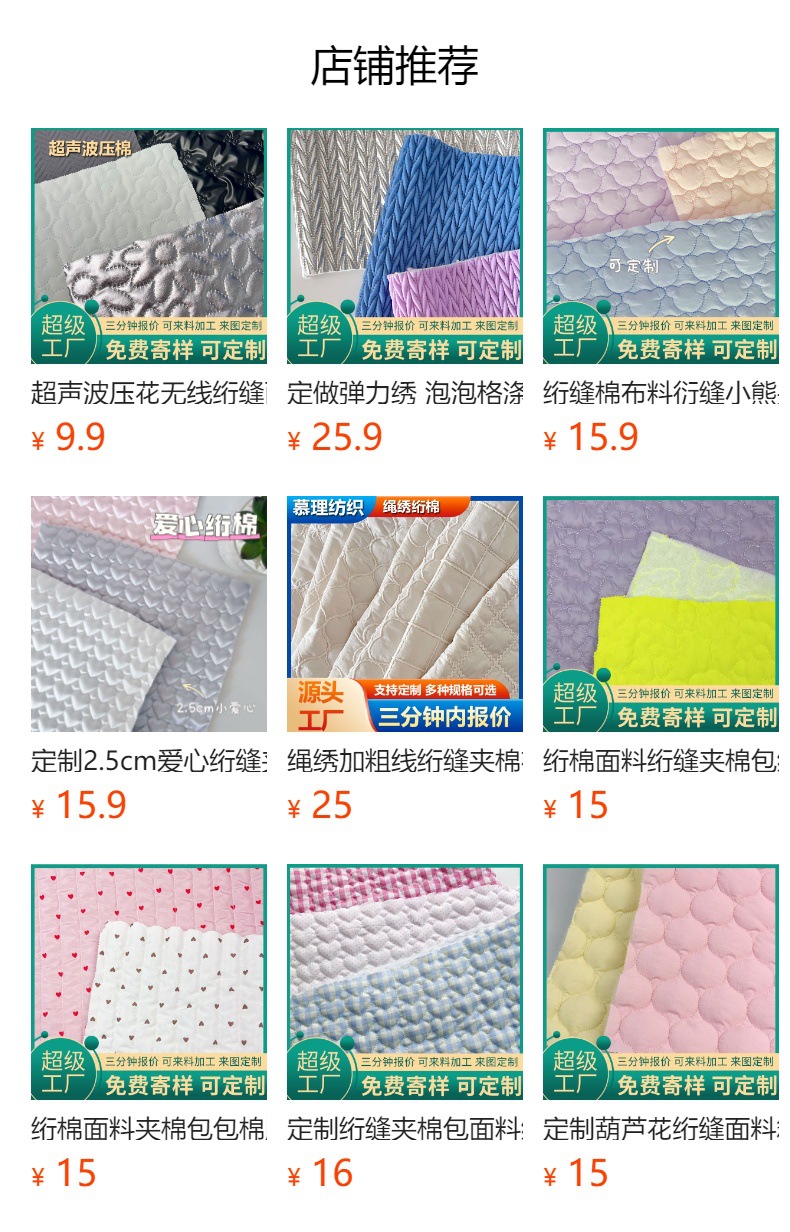 正方形格子绗缝面料面布离型纸绗缝夹棉包布衍缝棉布料刺绣