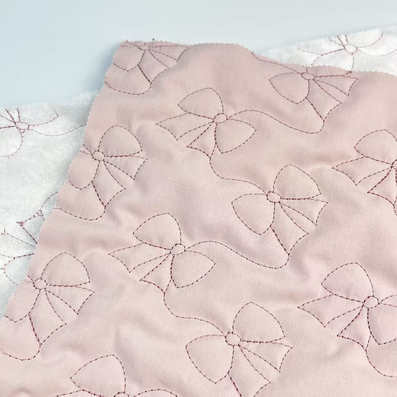 蝴蝶结绗绣绗缝夹棉包面料绗棉绣花面料箱包衣服布衍缝棉布料