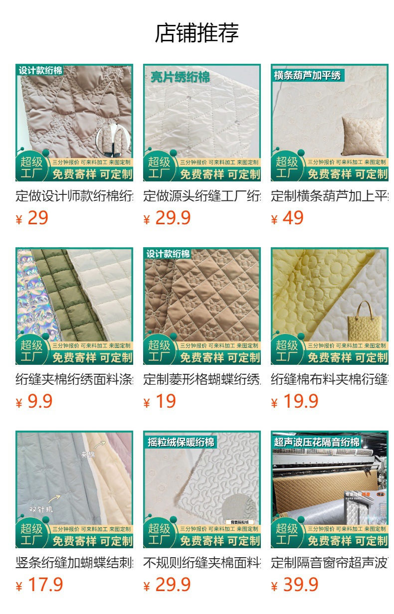 布匹供应时尚服装绗缝夹棉布料绗棉面料箱包棉服面料横条水洗棉
