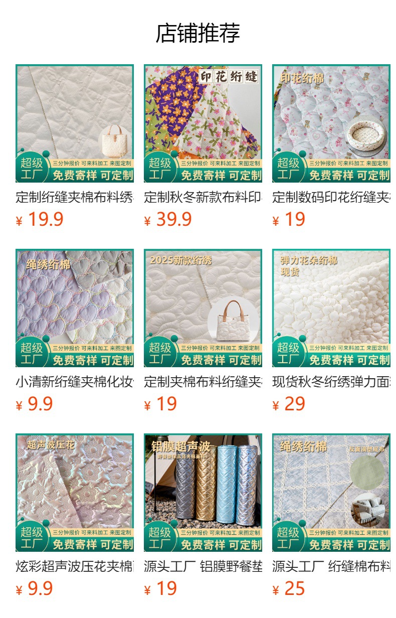 定制绗缝棉布料绗绣绗棉包包文具盒棉服面料衍缝彭胶棉宠物用品