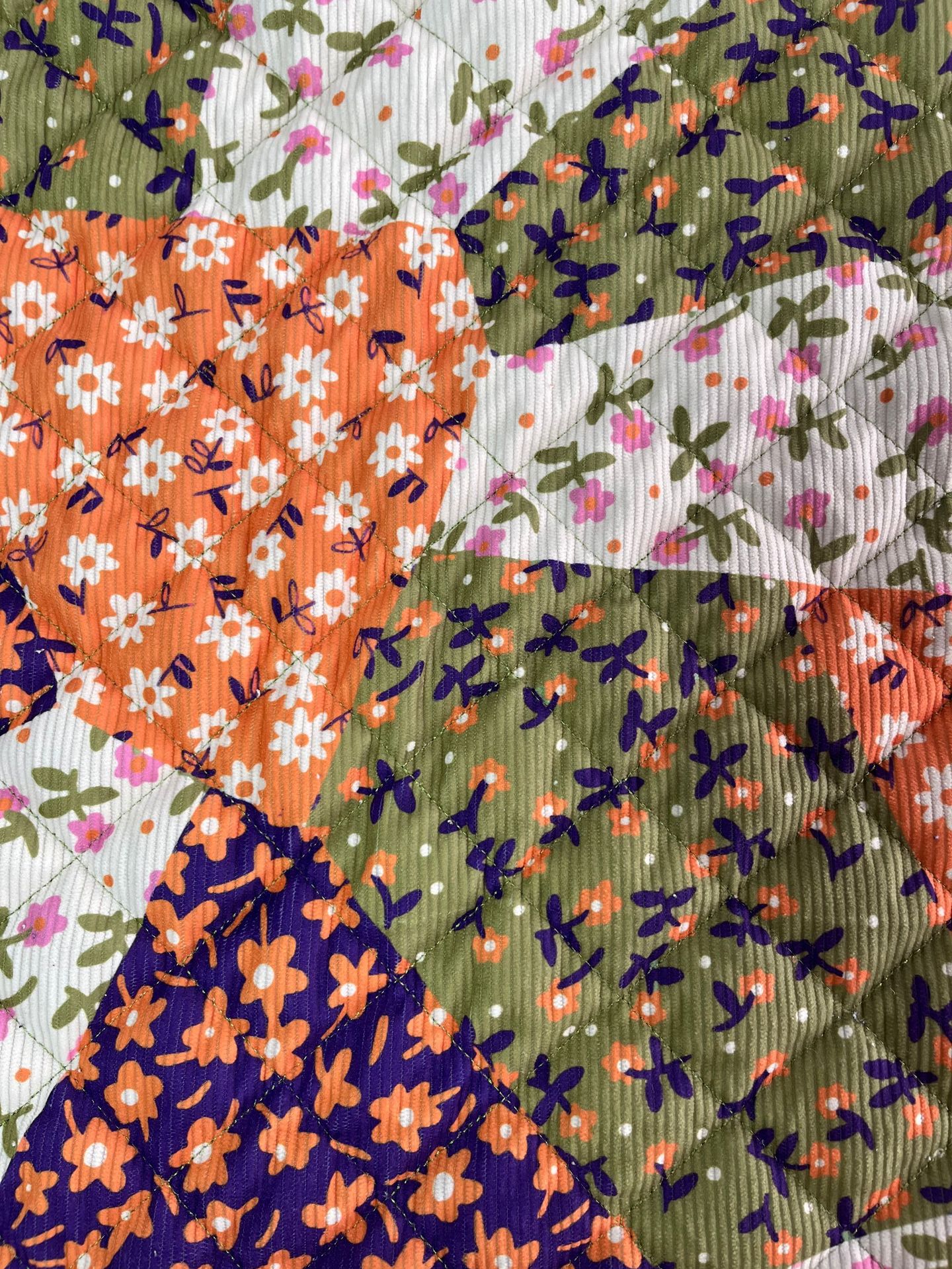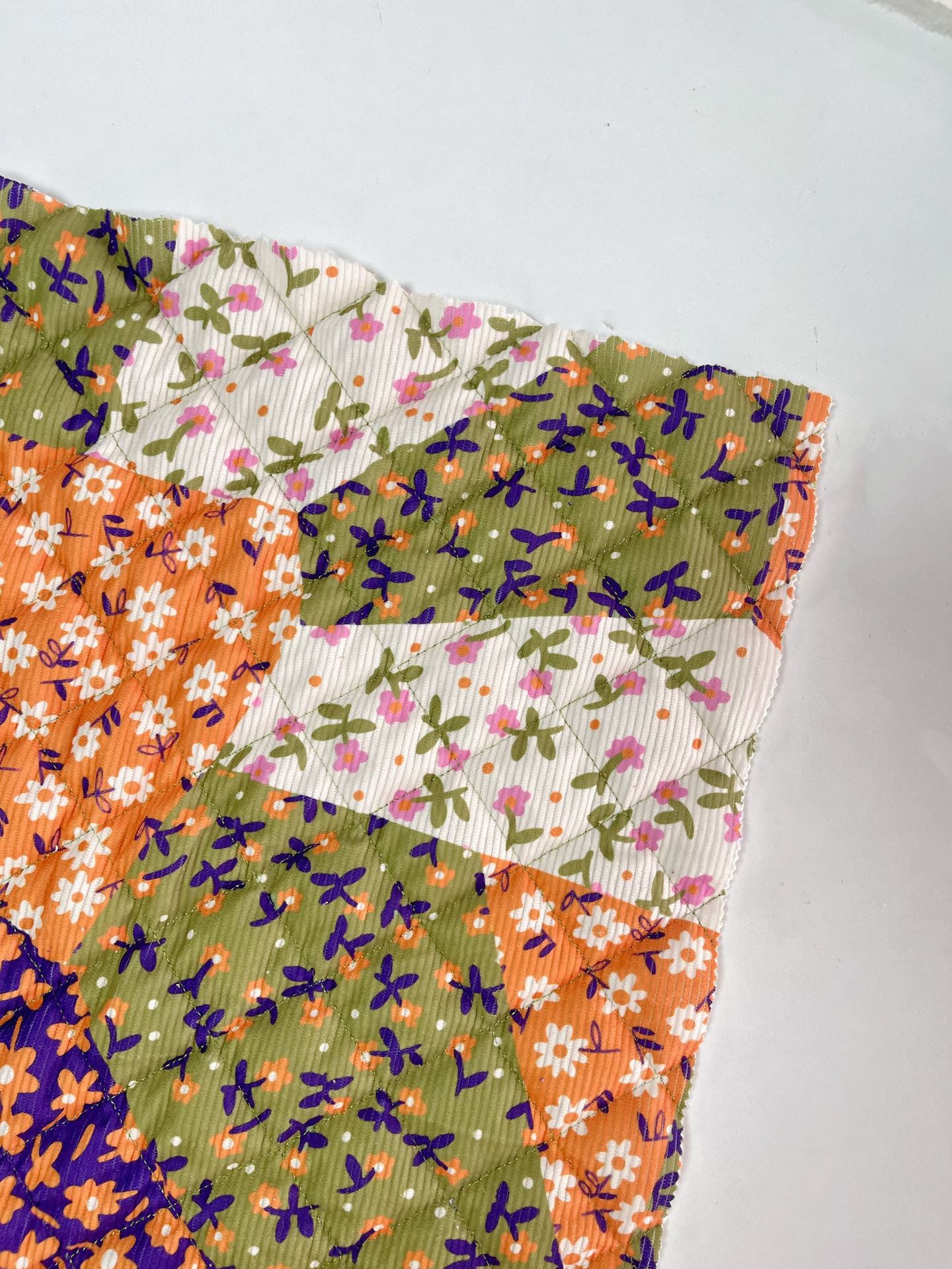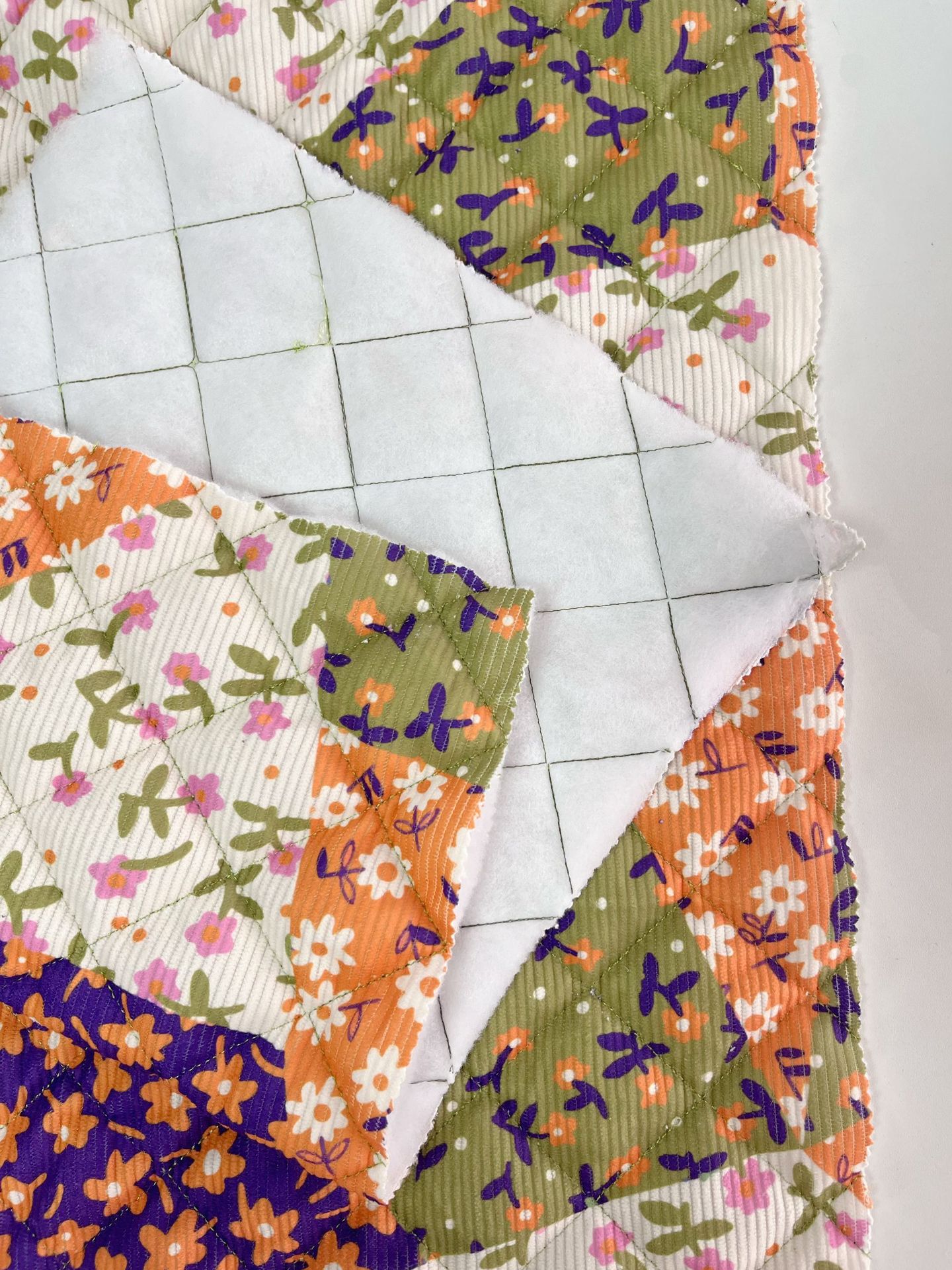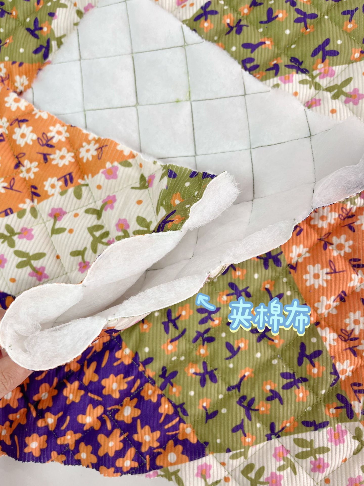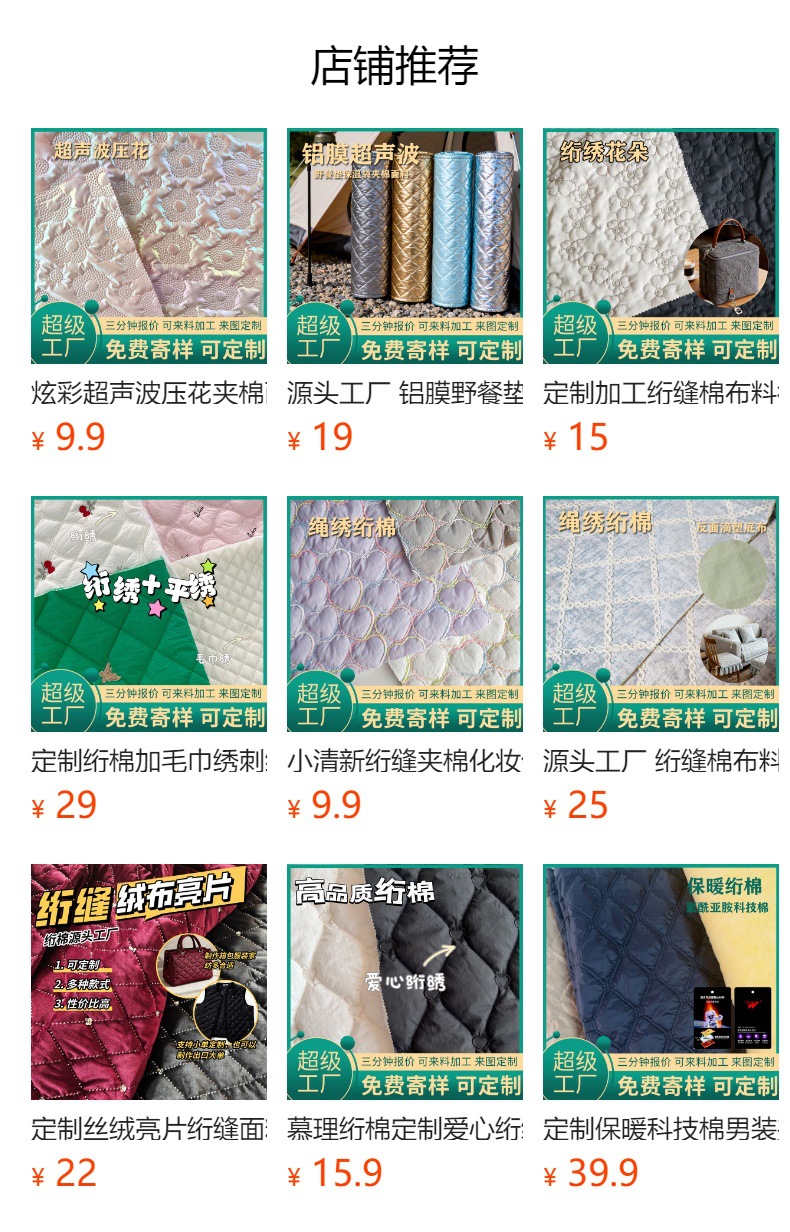 定制秋冬新款布料印花绗棉布料可爱手作绗棉内胆菱形格绗绣夹棉布
