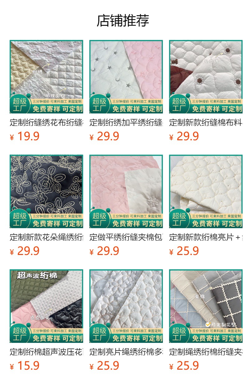 定制亮片绣绗棉绗缝加工箱包面料云朵包布料服装设计师面料绗绣