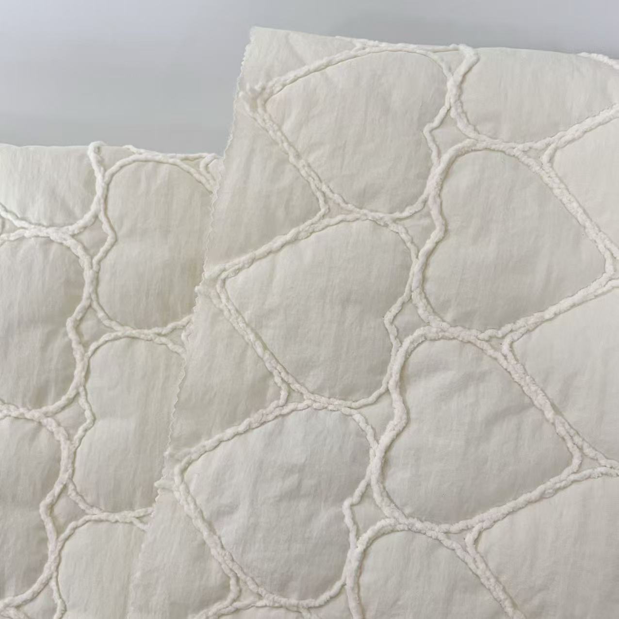 定制爱心绗棉绳绣粗线绣花布韩系ins风格面料云朵包服装家纺夹克