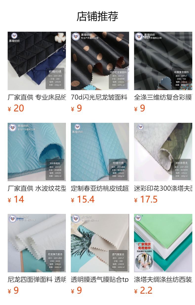 20D尼丝纺绗缝棉布料绗绣衍缝面料绗棉棉服羽绒服云朵包布