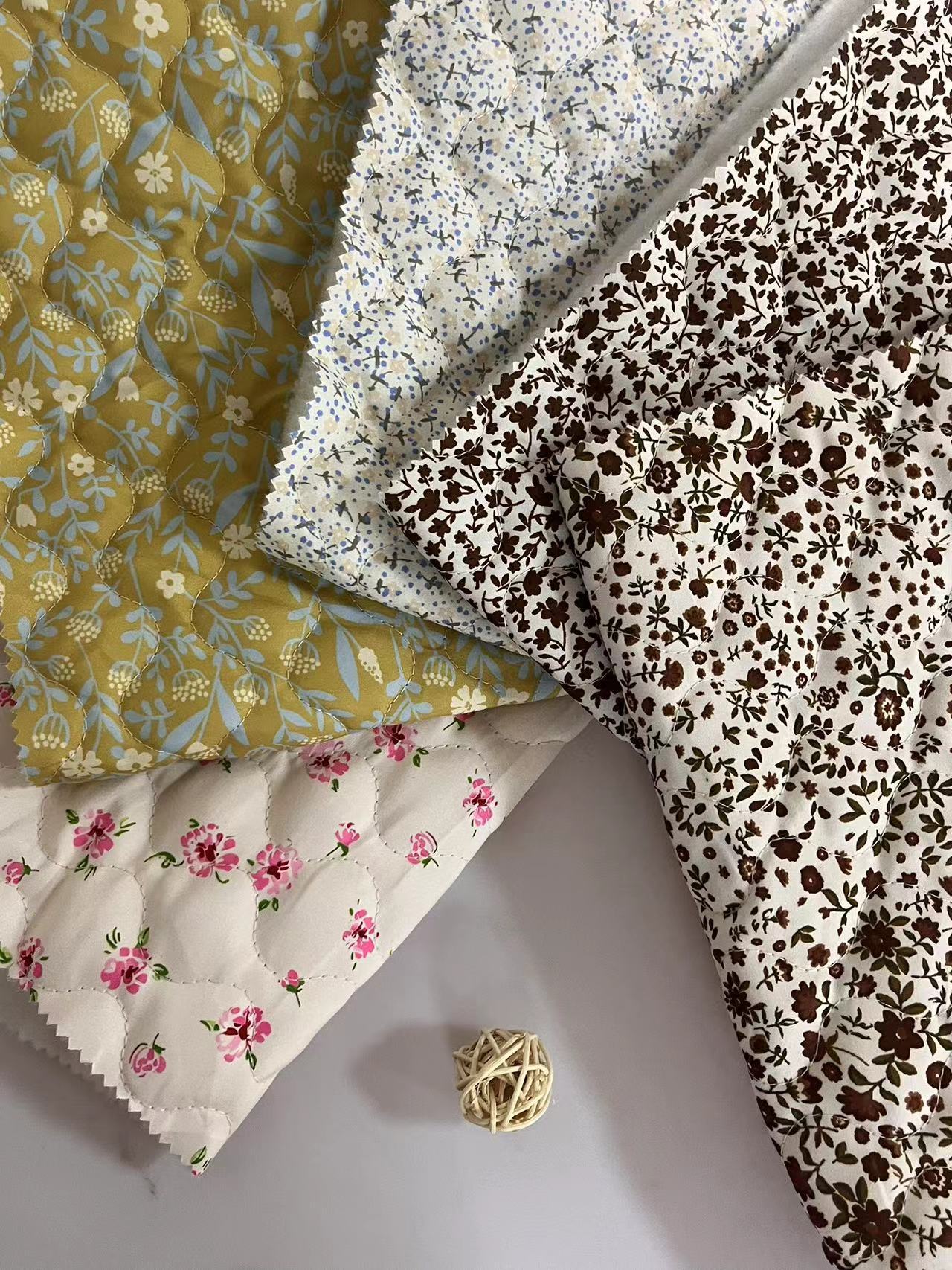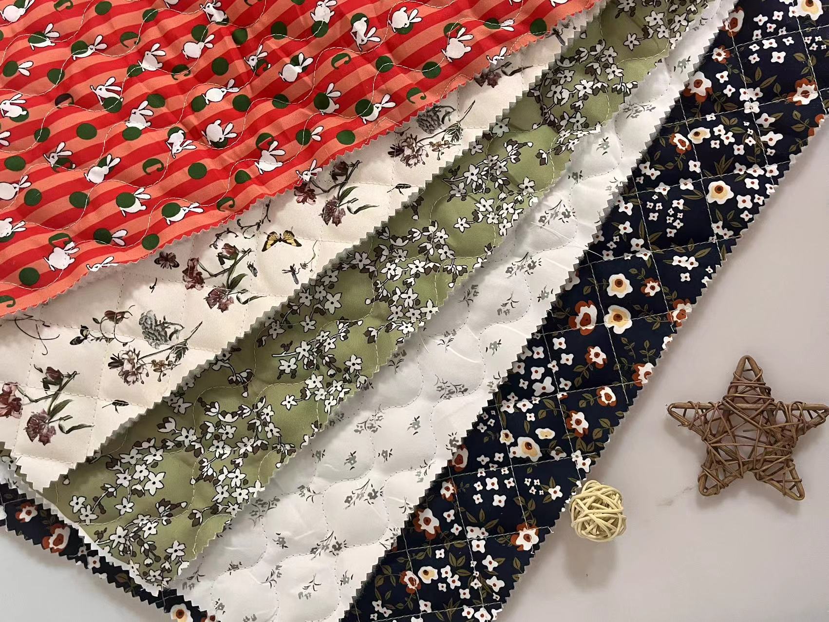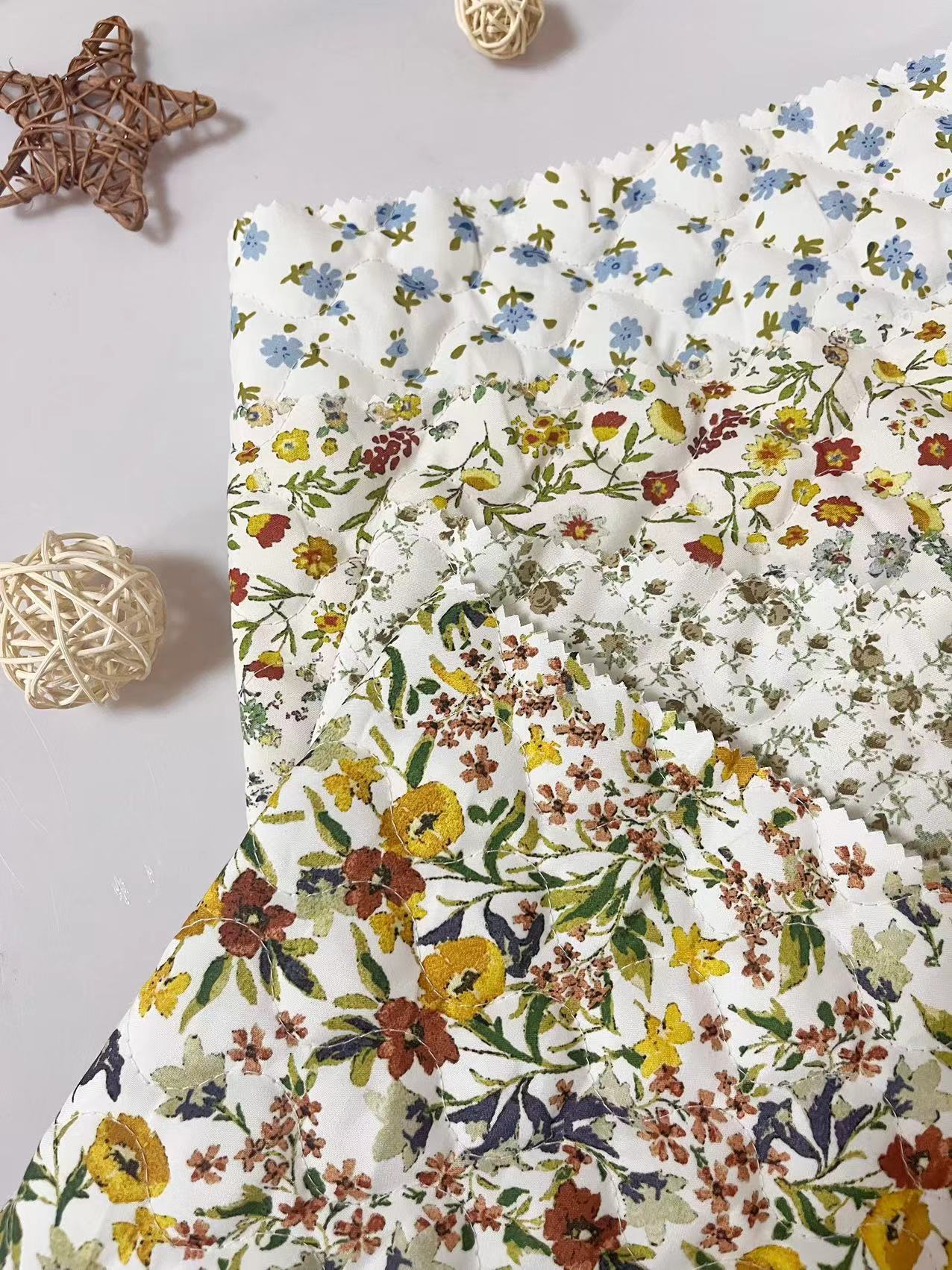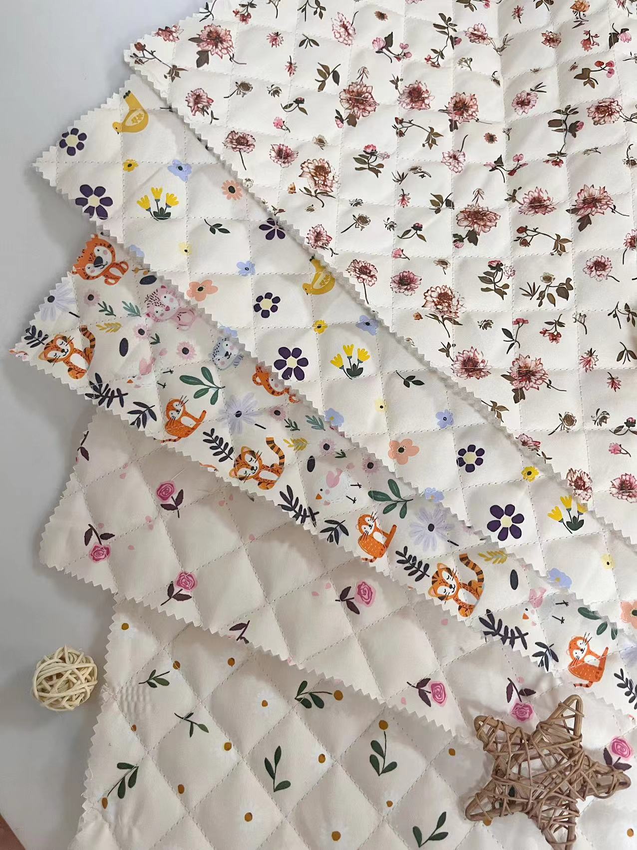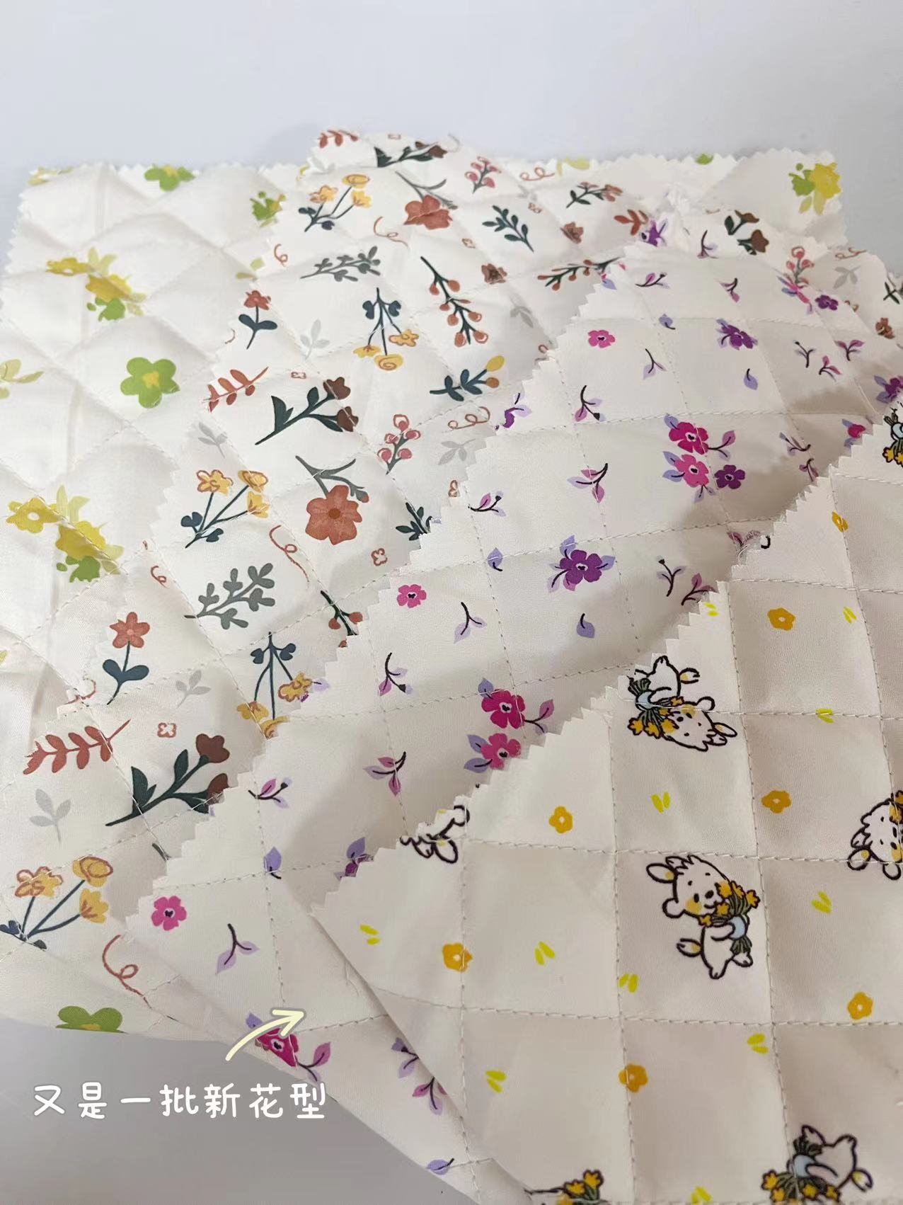 数码印花绗缝棉布料绗棉面料儿童服装云朵包箱包夹棉布料秋冬保暖