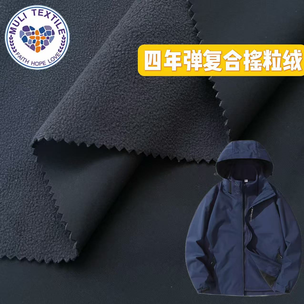 涤纶四面弹复合摇粒绒加厚校服外套秋冬软壳冲锋衣面料保暖防水
