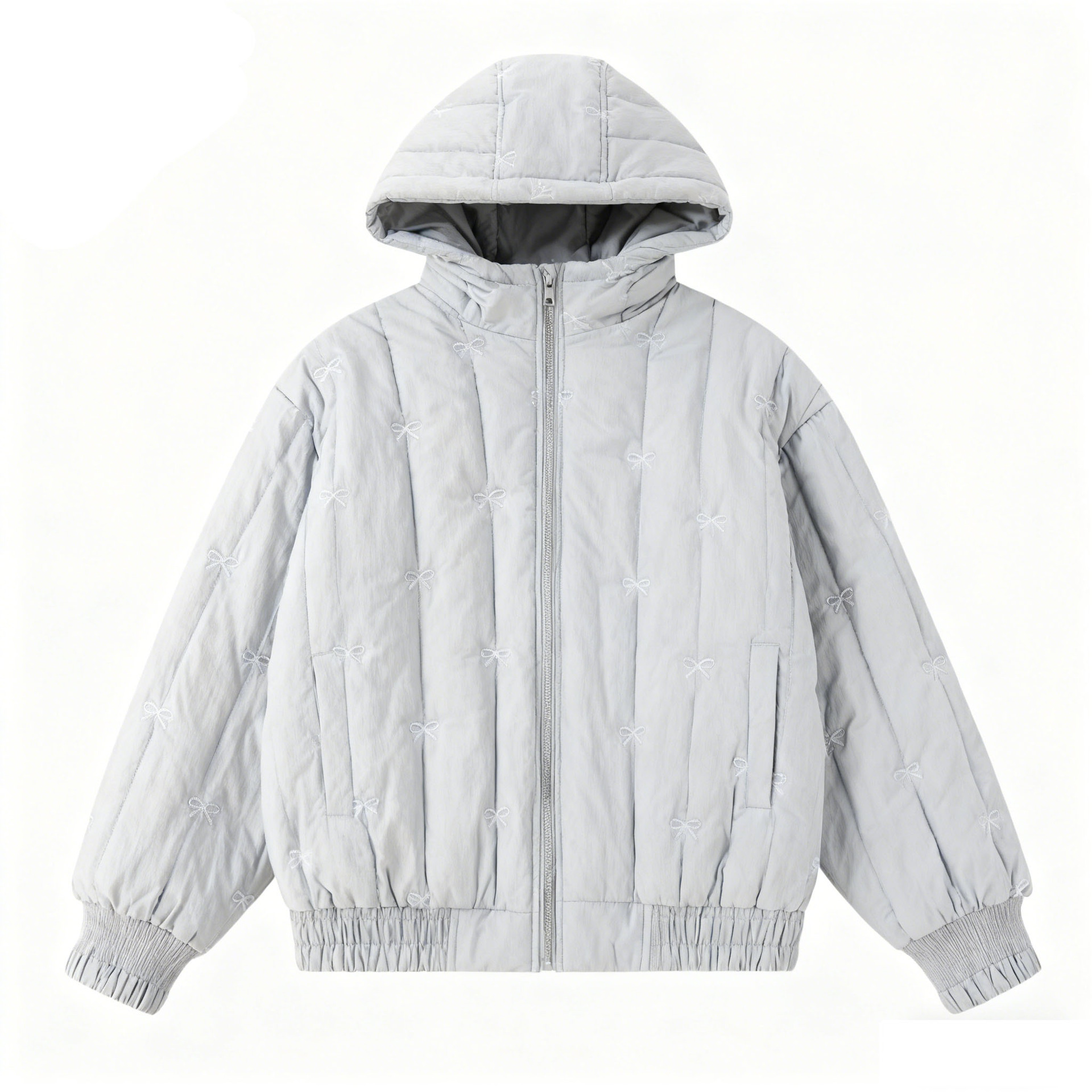 竖条绗缝加蝴蝶结刺绣绗缝棉布料韩国衍缝棉布料化妆包包棉
